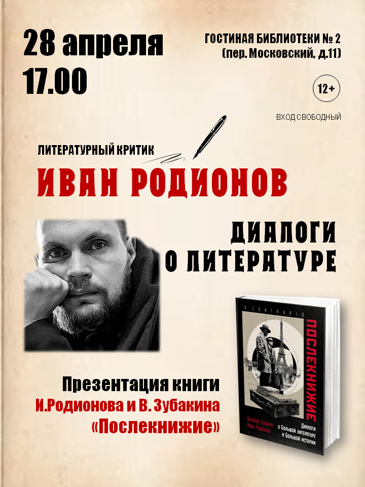 АНОНС! Творческая встреча с литературным критиком Иваном Родионовым «Диалоги о литературе»