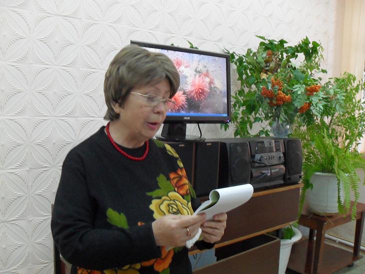 .Заведующая филиалом Васильева Елена Александровна рассказала о том. что это особый день для граждан старшего поколения во всему мире. На основе электронной презентации «Мои года ,мое богатство» Елена Александровна рассказывала, как пришёл в Россию День пожилого человека, который отмечается в нашей стране с 1992 года. ТОС «Улыбка» подготовил лирический музыкальный подарок .Звучали всеми любимые осенние песни «Листья желтые»,»Куст рябины красной», «Кленовый лист» и другие. А тосовские поэтессы Нина Александровна Бахмачева , Вера Петровна Молчанова, Валентина Анатольевна Максимова порадовали всех своими новыми поэтическими строками :« Осенний Камышин», «Осень на двоих» «Листья падают», «Осени последний день». Завершила ретро-вечер видео - иллюстрация «Мелодия осени» по произведениям Ф.Шопена.