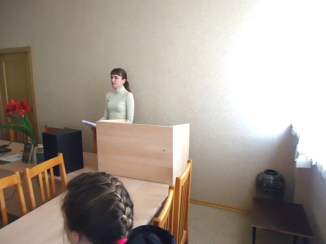 В беседе «Жизнь заповедников» библиотекарь Волкова Е.А. на основе тематической литературы обсудила со студентами экологическое значение заповедников, рассказала об истории создания Баргузинского заповедника, об озере Байкал. Был показан видеосюжет «Баргузинский заповедник».