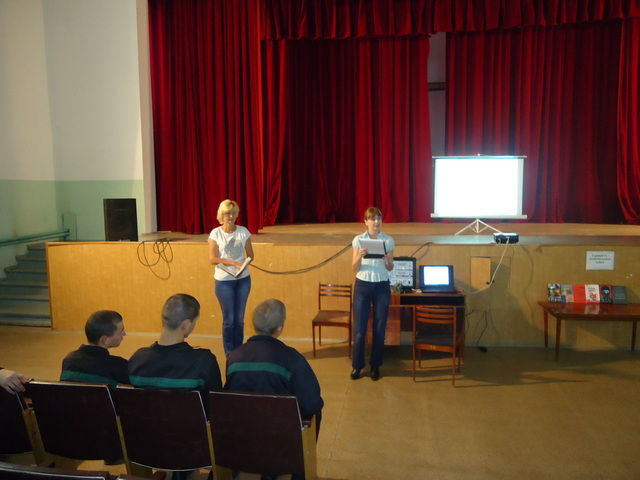 14 сентября 2017 года сотрудники библиотеки-филиала № 2 МКУК ЦГБС Волкова Е. А. и Свириденко О. Ю. провели выездное мероприятие для воспитанников ФКУ Камышинская ВК УФСИН России по Волгоградской области - час острых проблем «Терроризм – необъявленная война».