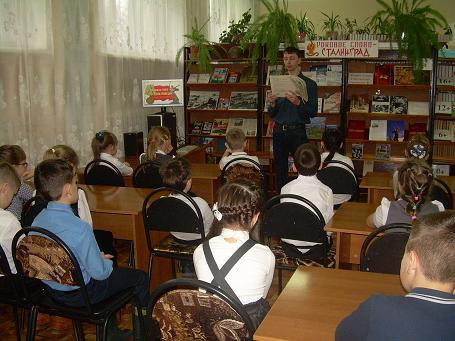 В ходе мероприятия библиотекарь Крапивин В. А. рассказывал ребятам о разных этапах Сталинградской битвы, о том какую важную стратегическую ценность представлял город, и с какой самоотдачей его защищали. На примерах героев рассказов С. Алексеева «Злая фамилия» и «Рыцарский подвиг» ребятам было показано, как солдаты защищали свой город. Из разных рассказов ребята могли видеть боевые заслуги солдат разных родов войск и разные этапы Сталинградского сражения. Библиотекарь сделал особый акцент на то, что таких отважных людей было много, о многих подвигах мы просто не знаем. По ходу мероприятия библиотекарь использовал  видеофрагменты военной хроники и иллюстрации военных корреспондентов.