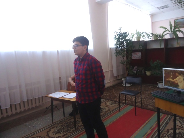 Марина Викторовна Черных ,ведущая мероприятия, отметила, что Юнна Мориц принадлежит к тому поколению, чьё духовное рождение пришлось на военные годы, а становление связано с атмосферой «оттепельных» лет. Поэтесса родилась 2 июня 1937 года в Киеве. Главный исток поэзии Ю. Мориц – из детства. Четырёхлетняя девочка начала сочинять стихи «от страха», пытаясь выжить в мире, где падали бомбы, горел эшелон с беженцами, где домом стал подвал… Училась на филологическом факультете, затем – на отделении поэзии Литературного института в Москве. В 1961 году вышла первая книга стихов Юнны Мориц «Мыс желания». Второй сборник стихов «Лоза» вышел в 1970 году. Поэтесса попала в «чёрные списки» за стихи «Памяти Тициана Табидзе», написанные в 1962 году. Поэтесса своим творчеством выступает против фальши и корысти, против чёрствости и бездуховности.