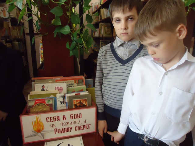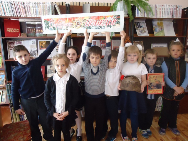 Заведующая детским отделением Догадова Татьяна Николаевна на основе тематической литературы рассказала детям о героическом подвиге советского народа в борьбе с фашистами. Были зачитаны рассказы из сборника «Салют, пионерия!». Дети узнали имена юных героев Великой Отечественной войны: Лёни Голикова, Марата Казея, Вали Котика, Зины Портновой, Бори Царикова. Ведущая рассказала и о самом маленьком герое Сталинградской битвы - шестилетнем Серёже Алешкове .