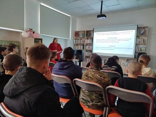 24 апреля 2026 года в Центральной городской детской библиотеке МКУК ЦГБС г. Камышина, модернизированной в рамках нацпроекта «Семья», ребята из МБУ «Оздоровительно - образовательный центр» совершили путешествие в страну Законию «Учимся вместе соблюдать Закон!», в рамках месячника по профилактике правонарушений.