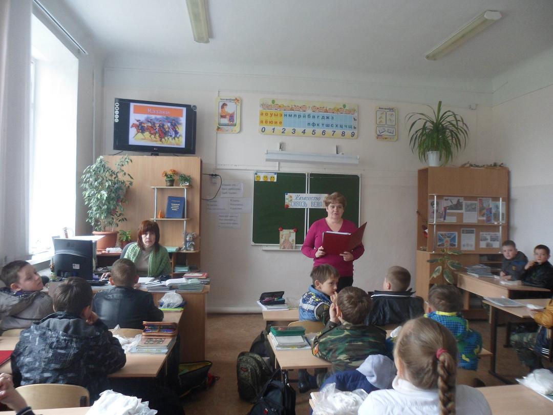 С помощью  электронной презентации школьники совершили экскурсию в прошлое, из которой узнали  о казаках  их традициях, быте, жилище, утвари, одежде. Библиотекарь  Конюхова Галина Альбертовна познакомила юных пользователей с литературными героями М. Шолохова:  Мишкой из рассказа «Нахаленок», Федоткой со страниц романа «Поднятая целина» и Ванюшкой из рассказа «Судьба человека». Ученики  высказывали своё мнение о героях рассказов.  По их мнению, Мишка совершил геройский поступок, Федотка  трудяга и озорник, а за Ванюшку они искренне радовались, что его нашел отец. Рассказ о казачатах  никого не оставил равнодушными. Литературное  знакомство доступными средствами познакомило маленьких пользователей с казачьими традициями  через творчество великого русского писателя Михаила Шолохова.