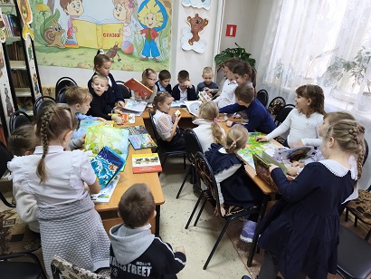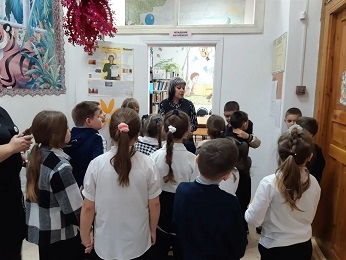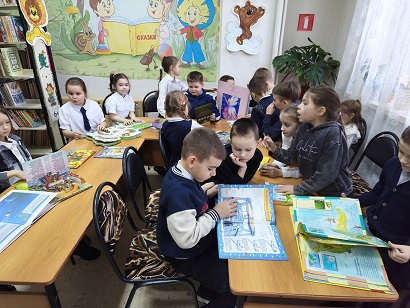 Сотрудник библиотеки познакомила ребят с младшим абонементом, читальным залом. Читатели посмотрели, как расположены книги, какие есть разделы, где хранятся журналы. Библиотекарь помогла разобраться юным читателям с такими понятиями, как «книжный фонд», «читальный зал» и «каталожная карточка», напомнила основные правила поведения в библиотеке, правила обращения с книгой.