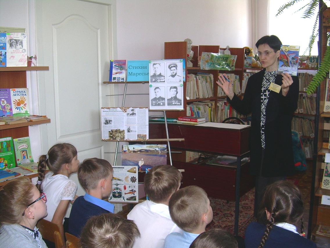 8 мая 2018 года  Центральную городскую детскую библиотеку  МКУК ЦГБС посетили учащиеся 3 «Б»  класса  МБОУ СШ№ 14. Библиограф подготовила для них авиа-час «Стихия Маресьева», посвящённый истории авиации.