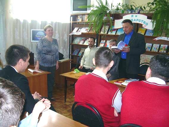 На память о встрече Центральная городская детская библиотека получила книги от Людмилы Алексеевны Якимовой, а Вадим Александрович Никитин предложил в подарок ребятам свои сборники.