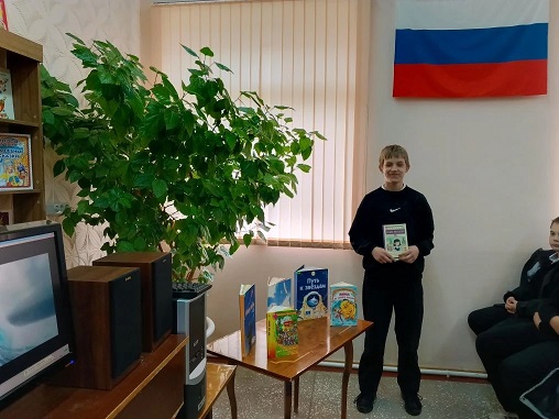 С помощью электронной презентации «Профессии любимых литературных героев» и тематической литературы представленной на книжной выставке «Профессии: от А до Я», библиотекарь отметила, что в мире насчитывается более сорока тысяч разных профессий. Каждая из них интересна по-своему. Труд помогает раскрыть человека, показать свои способности и умения. Каждый ребенок с детства мечтает, кем он хочет стать: учителем, космонавтом, врачом, следователем ,бизнесменом… А иногда ребята выбирают себе профессию, прочитав  очень интересные художественные  книги. Выбор профессии по книгам – необычный способ выбора трудовой деятельности. Именно читая книги о работе в той или иной отрасли, можно больше узнать о профессии.  Листая слайды красочной электронной презентации библиотекарь рассказывала юным пользователем  о том, что если хочешь быть путешественником читай книги К. Булычева «Приключение Алисы», хочешь быть  ветврачом почитай К. Чуковского «Айболит», почтальоном и фермером  - Э. Успенского «Каникулы в Простоквашино», «25 профессий  Маши Филипенко», учителем  - В. Распутина «Уроки французского», а хочешь работать в цирке, читай смешные истории Т. Крюковой «Вот так цирк». Тем, кто хочет стать летчиком нужно прочитать книгу Б.Полевого «Повесть о настоящем человеке»  и «Люди неба». Будущим космонавтам -  книги о Ю.Гагарине «Путь к звездам», Ю.Нагибин «Рассказы о Гагарине» и др. В ходе мероприятия школьникам был показан  отрывок из очень популярного детского художественного фильма «Приключения Петрова и Васечкина». Далее ребята отгадывали загадки, участвовали в  интересных играх: «Доскажи словечко», «Азбука профессий», «Изобрази профессию», в которых смогли  очень хорошо проявить и показать  себя. Ответили ребята и на вопросы викторины «Профессии литературных героев».