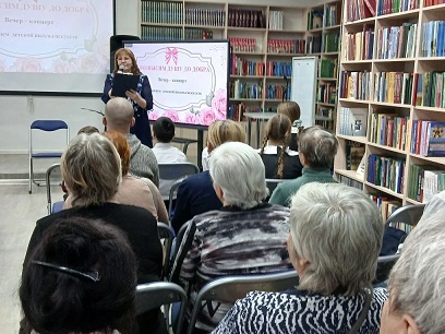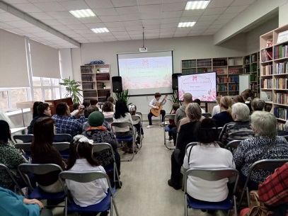 В самом начале мероприятия сотрудник библиотеки поприветствовала всех участников встречи, пожелала силы духа, стойкости, оптимизма, прочитала проникновенные строки поэта и композитора Славы Благова «Мы Вами гордимся, Вы – сильные люди…». Эти строки из песни и стали вступительным аккордом к предстоящему концерту, в котором приняли участие талантливые воспитанники из музыкальной школы искусств. Юные артисты с удовольствием продемонстрировали свои вокальные и музыкальные способности, исполнив произведения современных авторов и классические произведения.