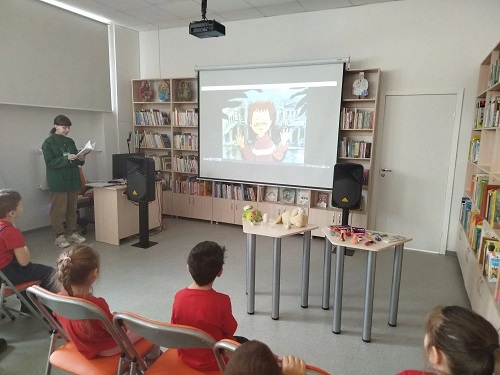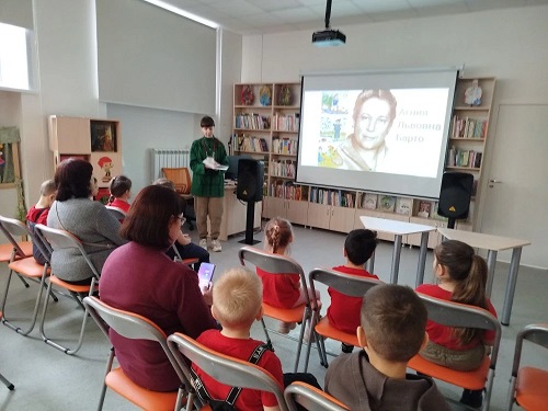 Из рассказа ведущей и авторской электронной презентации, показанной на большом экране, ребята узнали о творчестве замечательной детской поэтессы Агнии Барто.
