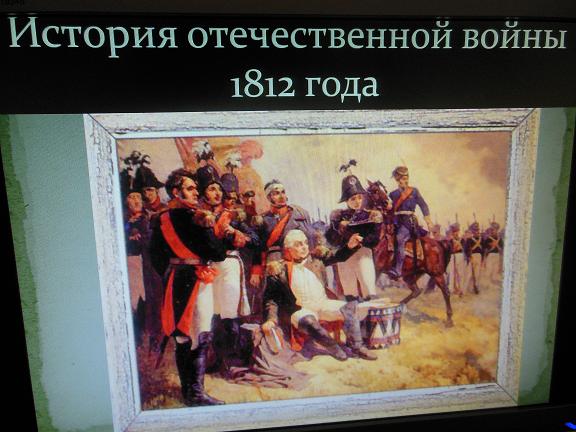 Зав. отделом обслуживания Русских Т. Н. с помощью электронной презентации познакомила молодых пользователей с бесчисленными примерами отваги и самопожертвования защитников Родины.Зачитывала отрывки из романа «Война и мир» Л. Н. Толстого. Член клуба Жанна Рубан прочитала стихотворение М. Ю. Лермонтова «Бородино». Библиотекарь Гревцова С. М. познакомила с книгой Надежды Дуровой «Записки кавалерист-девицы», история жизни которой поразила воображение ребят. Были продемонстрированы фрагменты из кинофильмов «Война и мир» и «Гусарская баллада», прототипом главной героини которой была Надежда Дурова. При подготовке и проведении мероприятия были использованы материалы Российского военно-исторического общества.