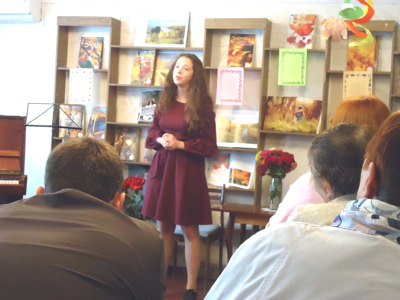 2 октября 2017 года в гостиной Центральной городской библиотеке МКУК ЦГБС к Международному дню пожилых людей в рамках работы объединения «Посиделки» был проведен музыкально- поэтический вечер «Природы тихое очарованье». Этот день совпадает с Международным днем музыки ,и поэтому закономерно, что в гости к старшему поколению пришли студенты и преподаватели ГОБУК ВПО «ВГИИК» в г.Камышин»