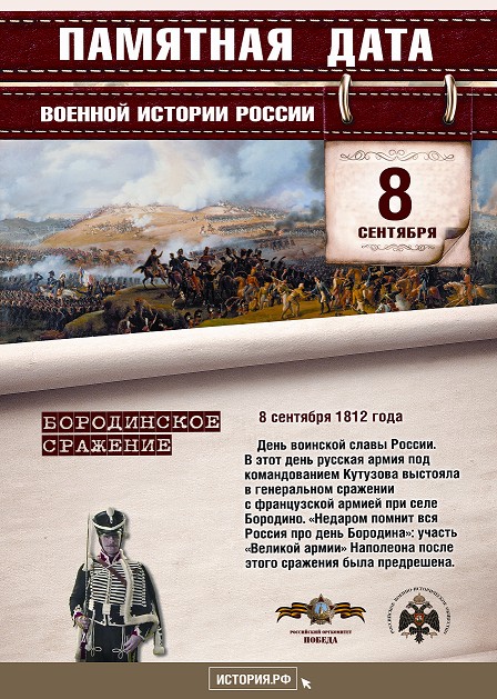 15 сентября 2017 года библиотекой- филиалом №3 МКУК ЦГБС было проведено мероприятие , посвящённое 205 – летию Бородинского сражения для учащихся 10 «А» класса МБОУ СШ № 12 школы .