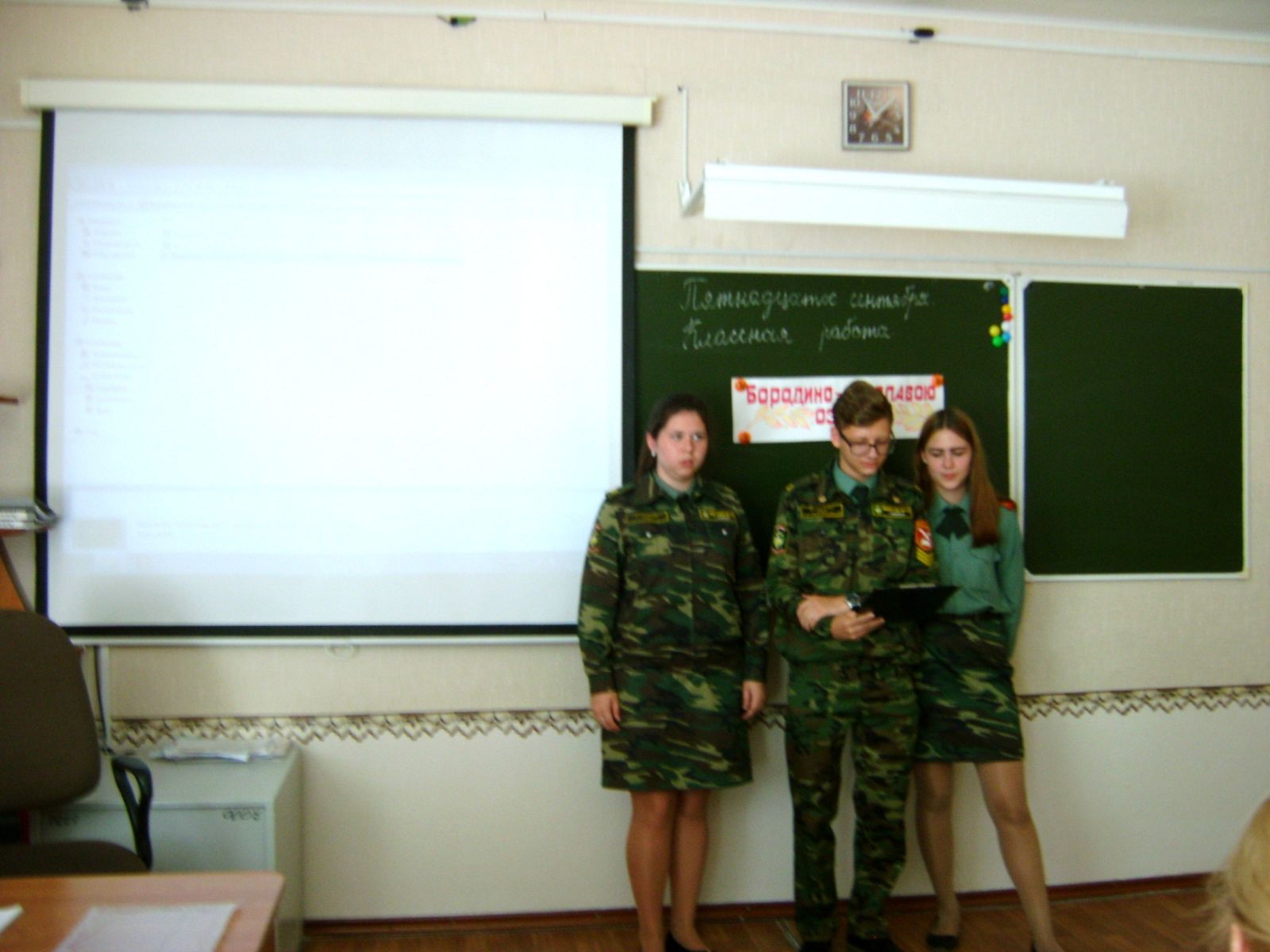 Заведующая библиотекой- филиалом №3 Гендель Л.А. на основе патриотической литературы рассказала о том, что каждое время рождает своих героев . Каким бы ни было тяжёлым для нашей страны , на страницах её истории написаны их имена . Во время Отечественной войны 1812 года героев было немало. Что ни имя – то легенда. О героизме сынов России таких, как Кутузов М.И. , Кульнев Я. , Тучков П. , Тучков А. , Давыдов Д.. С узнали старшеклассники из беседы с библиотекарем. С интересом учащиеся посмотрели видеоклип на стихи М.Цветаевой «Генералам 1812года». Учащиеся читали стихотворения о Бородинском сражении , а в заключении ретро- взгляда « И громче труб на поле чести звучит к Отечеству любовь» закрепить полученные знания по военной истории своей страны молодым людям помогла электронная презентация «Бородинская битва».При подготовке и проведении мероприятия были использованы материалы Российского военно-исторического общества.