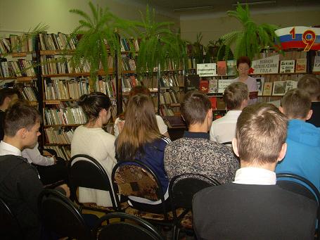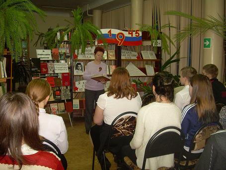 Библиотекарь старшего абонемента Перепелицына Н. М. рассказала об авторе этой книге Ю. Лепехине, Народном учителе РФ, Почётном гражданине Волгоградской области, зачитала страницы «Воспоминаний детей военного Сталинграда» Галины Крыжановской, Бориса Усачёва, Гали Кулешовой, выдержки из Приказа народного комиссара обороны, привела цифры и факты Сталинградской битвы. В заключение библиотекарь прочитала обращение Ю. Лепехина к подрастающему поколению с призывом помнить «былинный подвиг нашего народа» и не позволять европейским политологам переписывать историю.