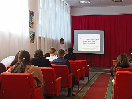 Гость мероприятия отметил, что IT-сфера – одна из самых развивающихся, поэтому профессии, связанные с ней, есть и будут особенно востребованными. Также Михаил Алексеевич рассказал о том, в каких областях деятельности работают IT-специалисты.