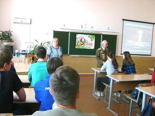 Видеоролик «Я не видел войны» открыл встречу. Заведующая Библиотекой Гендель Л.А. поздравила с наступающим праздником Днём Победы , отметив , что это самый трогательный праздник не только тех , кто воевал , но и ныне живущих , рассказала о популярных книгах про Великую Отечественную войну. С помощью материалов Российского военно-исторического общества были раскрыты основные этапы войны и великое значение Победы. Полковник запаса, ветеран Вооруженных Сил Шантарин Владимир Сергеевич рассказал о своём военном детстве , о том, как дети и подростки как помогали взрослым , о страшном голоде , о своём отце , дяде. Рассказал о небывалом героизме советского народа.
