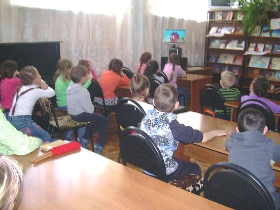 Библиотекарь читального зала Дроздова М.М. предложила ребятам угадать по описанию главных героев и найти их на предложенном  постере.  Вместе с Крошем все желающие стали собираться в экологический поход: из предложенных предметов выбирали туристическое снаряжение и отправились с Крошем по маршруту. Познакомившись   с мультфильмом про Смешариков «Большое – маленькое море» ребята рассуждали, почему нужно беречь природу.На лесной полянке узнали от Кроша какой бывает мусор и чем он опасен. Самые отзывчивые маленькие пользователи  лечили зайчишку и мышонка, которые пострадали от брошенного стекла на полянке и сделали им перевязку. По ходу мероприятия библиотекарь знакомила ребят с разными журналами «Смешарик» , пр6едставленными на  журнальной выставке.Зачитывалась  вслух интересная  информация  из жизни насекомых и зверей. С помощью  электронной презентации малыши определяли, где живут изображённые животные и слушали  их голоса.