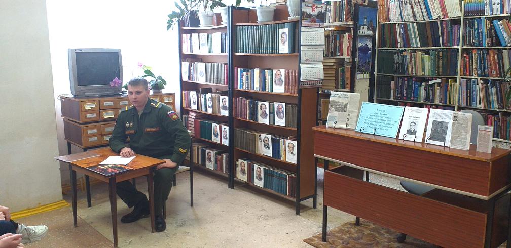 На основе тематической литературы заведующая филиалом Шестирикова Ю. В. рассказала учащимся о том, что в историю России вписано немало войн. Одна из печальных страниц российской истории — чеченская война, которая официально так и не была признана войной, а вошла в историю как «меры по укреплению правопорядка и контртеррористическая операция на Северном Кавказе». Старшеклассники узнали предпосылки чеченской войны, ход ее действия, основные военные операции, узнали о легендарной 6 роте…