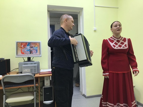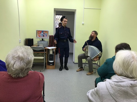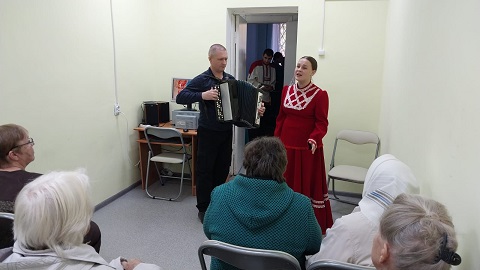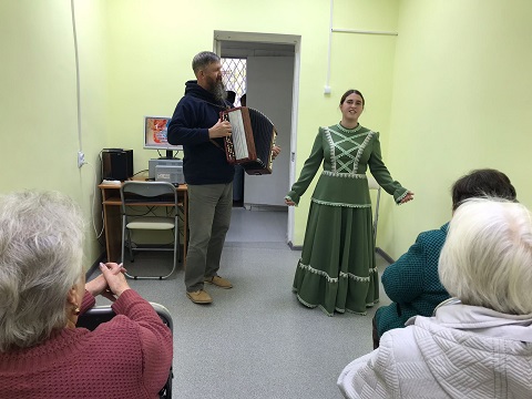 С теплыми поздравлениями и пожеланиями доброго здоровья и долголетия, сотрудник библиотеки обратилась к присутствующим, поблагодарила за то, что они остаются верными друзьями библиотеки. Поздравить людей зрелого возраста пришли студенты отделения «сольное и хоровое народное пение»колледжа ВГИИК.В их исполнении звучали песни: «Светлая Русь», «Во поле орешина», «На кургане», а студенты «отделения народных инструментов» исполнили «Самба» Виницкого, «Осенний листопад» Косма Жозеф. Когда звучали знакомые мелодии, было заметно, что слушатели, чувствовали настольгию, тихо подпевая исполнителям. При проведении мероприятия звучало много стихотворений: Л. Рубальской, А. Дементьева, С. Есенина.