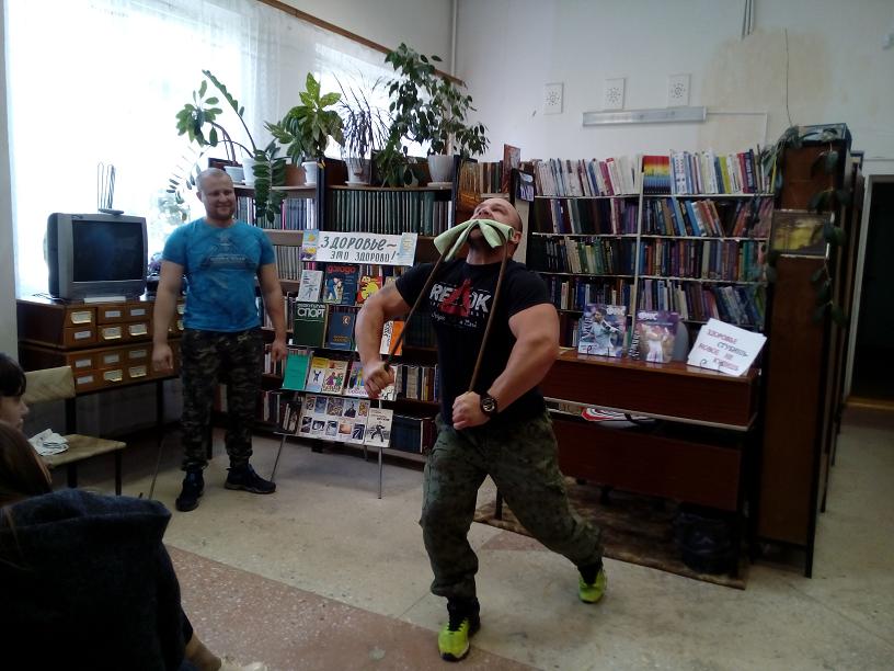 12 октября 2017 года в библиотеке-филиале№ 5 МКУК ЦГБС для учащихся 9 «А» класса МБОУ СШ №6 совместно с инструкторами спортивного клуба «ФИТНЕС- МАНИЯ» Крайниковым Антоном и Александром Пономаревым был проведен урок спортивных достижений «Молодежь выбирает ЗОЖ», в рамках акции «Спорт против наркотиков».