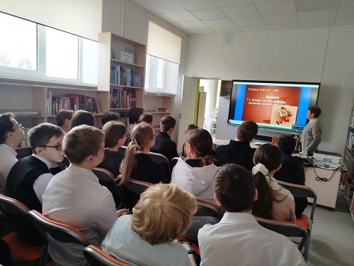 Эпиграфом к мероприятию стали слова: “Если не знаешь, как поступить, поступай по закону”. Библиотекарь попросила учащихся ответить, что такое “закон”, почему нельзя нарушать законы и какие причины подталкивают подростков к совершению преступлений. Особое внимание было уделено «моде» на воровство, шантажу, буллингу, нецензурной брани в общественных местах, правилам пользования "средствами индивидуальной мобильности". Учащимся для обсуждения были предложены реальные противоправные ситуации, а также вопросы об ответственности, например, за порчу чужого имущества, вербальную угрозу жизни, осквернение зданий и другие. Отрывки из книги Н. Вишняковой “Не плачь” заставили ребят задуматься о наказании не только за драки между подростками, но и за съемки и размещение отснятых видеороликов в интернете. В заключение библиотекарь вместе с ребятами устно составили примерную памятку «Как не преступить закон?».
