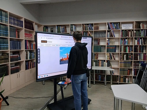 Продолжением урока стало игровое задание, в котором на интерактивной доске ребята с интересом складывали пазл «Москва - столица Российской Федерации».