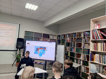 Библиотекарь рассказала о структуре Основного Закона Страны, сопровождая своё выступление показом электронной презентации, и остановилась на некоторых главах основного закона страны. Студенты тоже приняли участие в Уроке Гражданственности, они дружно вспоминали «Основные права и обязанности граждан Российской Федерации», а затем приняли активное участие в викторине «Символы России». Вопросы викторины не застали студентов колледжа врасплох и, поэтому, они ещё разгадали кроссворд «Избиратель».