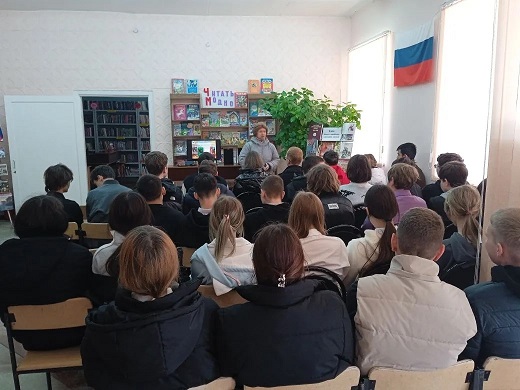 29 апреля 2026 года в библиотеке-филиале № 4 МКУК ЦГБС для учащихся 8 и 9 классов МБОУ СШ № 5 прошел Военный киносеанс «Кинолетопись Великой Отечественной. Великие сражения» ко Дню Победы.