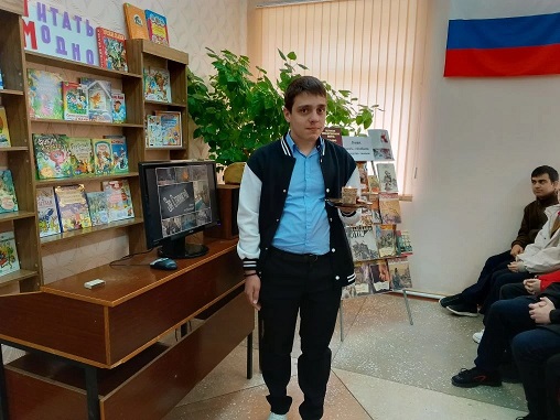 Сегодня на встрече со старшеклассниками разговор шел о кинофильмах о войне. Именно через фильмы – документальные и художественные, мы можем увидеть великий подвиг советского народа, стойкость, мужество и героизм солдат на фронте. Листая слайды электронной презентации библиотекарь рассказывала юным пользователям о том, что столько лет прошло с тех пор, как отгремели залпы военных лет, но тема войны не сходит с экрана. Это тяжелое для страны время навсегда останется с нами, на страницах книг и в документальном и художественном кино. В ходе мероприятия старшеклассники познакомились с «золотым фондом» литературных экранизаций о Великой Отечественной войне, с историей создания некоторых кинокартин, получили сведения о режиссёрах и актёрах. Первым был представлен фильм, заслуженно занимающее место в списке лучших военных фильмов – «Брестская крепость», по мотивам одноименной книги С. Смирного. Картина, снятая Россией и Белоруссией, о героической обороне легендарной Брестской крепости, одной из первых принявшей удар фашистских захватчиков на себя. Одним из лучших современных фильмов о нашей Священной войне, о 28 русских парнях, которые не пропустили две фашистские танковые дивизии к столице нашей родины – «28 панфиловцев». Мощная кинокартина, снятая на народные деньги. Проект, который сразу нашел отклик в сердцах нашего народа. Этот фильм, основан на реальных событиях. Затем библиотекарь представила захватывающий фильм о Сталинградской битве «Они сражались за Родину» (режиссер — С. Бондарчук), снятый по одноименному роману М.Шолохова, первые главы которого писатель начал писать в нашем родном городе Камышине. Фильм объединяет одно – сила духа русского человека, советского воина стойко пронесшего все ужасы войны. Большое внимание библиотекарь уделила актерам, сыгравшим главные роли в этом фильме: С. Бондарчук, В. Тихонов, В. Шукшин, Г. Бурков, Ю. Никулин и др. Нельзя было не вспомнить об отдельных страницах истории войны, от которых весь мир содрогается до сих пор – концлагеря. Тяжкие испытания, выпавшие на долю взрослых, прошедших застенки концлагерей - это фильм «Судьба человека» (режиссер — С. Бондарчук), Не обошли стороной и тему «дети в годы Великой Отечественной войны». Об этом рассказывает современный фильм «Группа крови», о маленьких донорах крови, который протрясает до глубины души. В заключении библиотекарь рассказала и показала отрывок из очень популярного и всеми любимого фильма «А зори здесь тихие» (режиссер — С. Ростоцкий), по одноименной книге Б.Васильева.