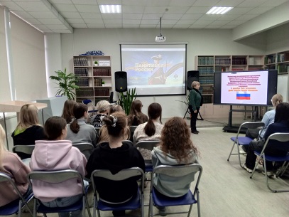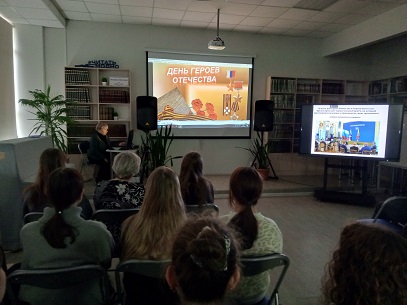 5 декабря 2025 года сотрудники камышинской Центральной городской библиотеки имени Михаила Шолохова МКУК ЦГБС, подготовили и провели для студентов Камышинского индустриально-педагогического колледжа имени Героя Советского Союза А. П. Маресьева Патриотический вечер «Во славу Отечества: герои всех времён», ко Дню Героев Отечества.