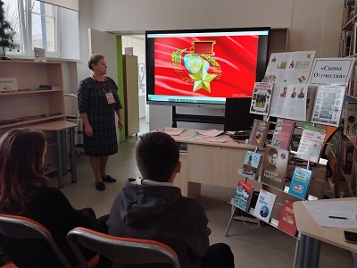 Закончился урок героизма в модельной детской библиотеке Камышина видеосюжетом «Славные герои» и обзором тематической книжной выставки «Сыны Отечества», подготовленной специально к мероприятию.