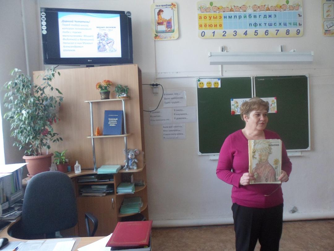21 апреля 2017 года библиотекарь - филиала № 3 МКУК ЦГБС для учащихся 3 «а» и 3 «в» классов МОУ СШ № 12 в рамках мероприятий цикла «Шолоховиана» провела выездное литературное знакомство «Шолоховские казачата».