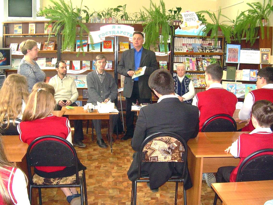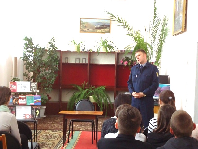 19 апреля 2017 года в гостиной библиотеки-филиала № 2 МКУК ЦГБС в рамках месячника по профилактике преступлений и и правонарушений прошёл урок правовой культуры «Вы вправе знать о праве» для учащихся 8 и 10 класса МБОУ СШ № 11 с участием Камышникова Александра Александровича, старшего воспитателя – начальника отряда ФКУ Камышинская ВК УФСИН России по Волгоградской области.